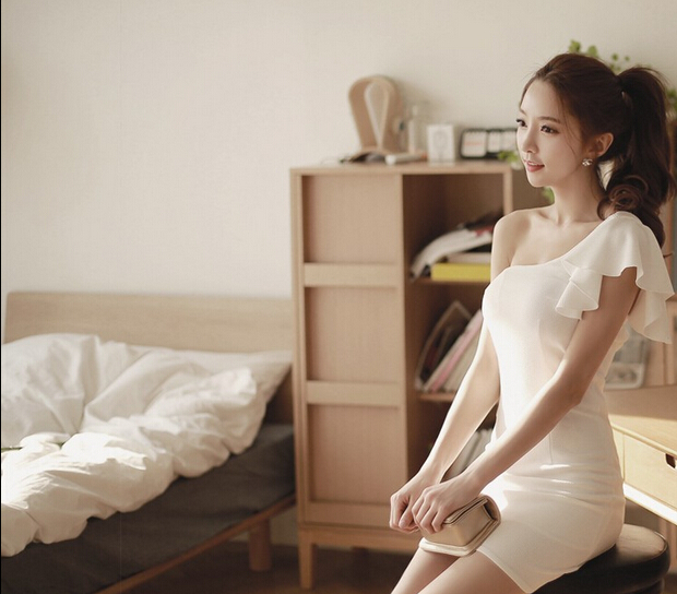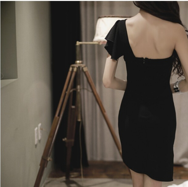 Birthday Party Sexy Diagonal Collar Dress Small Dress
